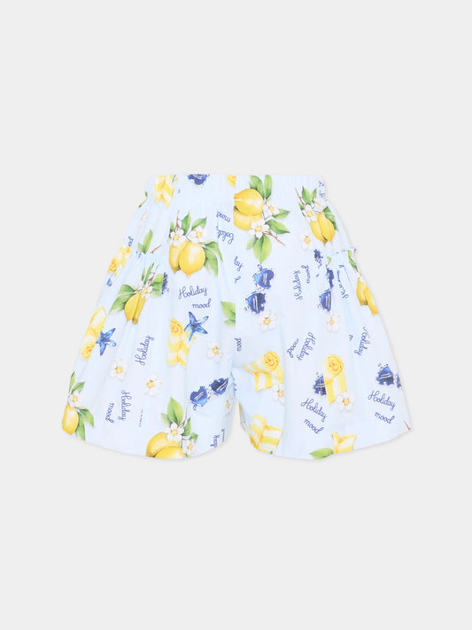 Shorts multicolor per bambina con limoni