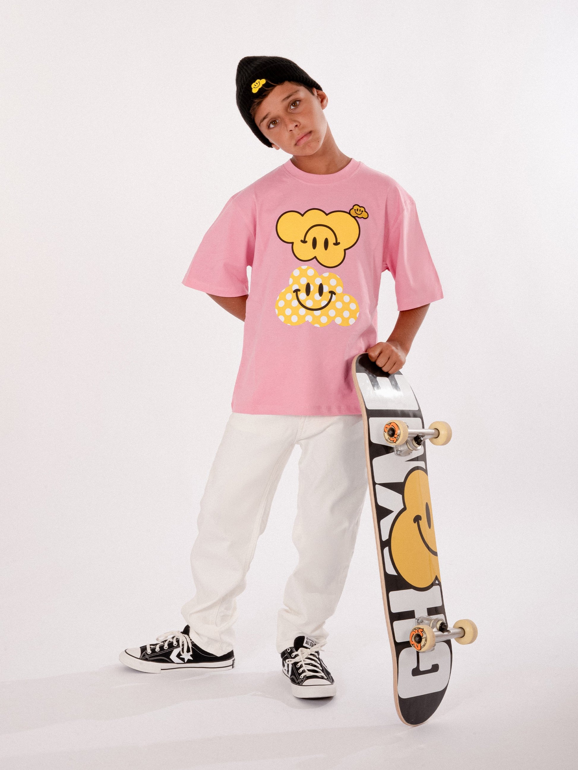 Colore: Rosa Descrizione: T-shirt rosa oversize, realizzata in jersey di cotone. Questo articolo fa parte della nuova capsule collection di Ghamye. Creato da Cesare Morisco, il brand ha come protagonista l'iconica nuvola gialla, simbolo di positività e felicità. La t-shirt presenta maniche corte e girocollo a costine; é decorata con patch a forma di nuvola, ricamata sul petto e con stampa nuvola gialla e nuvola a pois sulla parte anteriore. Eventuali irregolarità nel colore o nella stampa non sono da considerarsi difetto ma caratteristica del capo stesso. Dettagli: 100% Cotone. Lavare a mano.