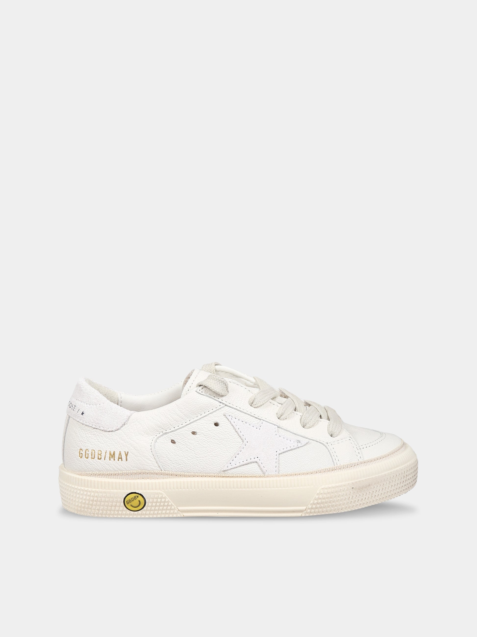 Colore: Bianco Descrizione: Sneakers bianche in pelle, con suola in gomma, punta tonda, chiusura con lacci. Sono decorate con iconica stella bianca e smile giallo logato, su un lato. Dettagli: 100% Pelle.