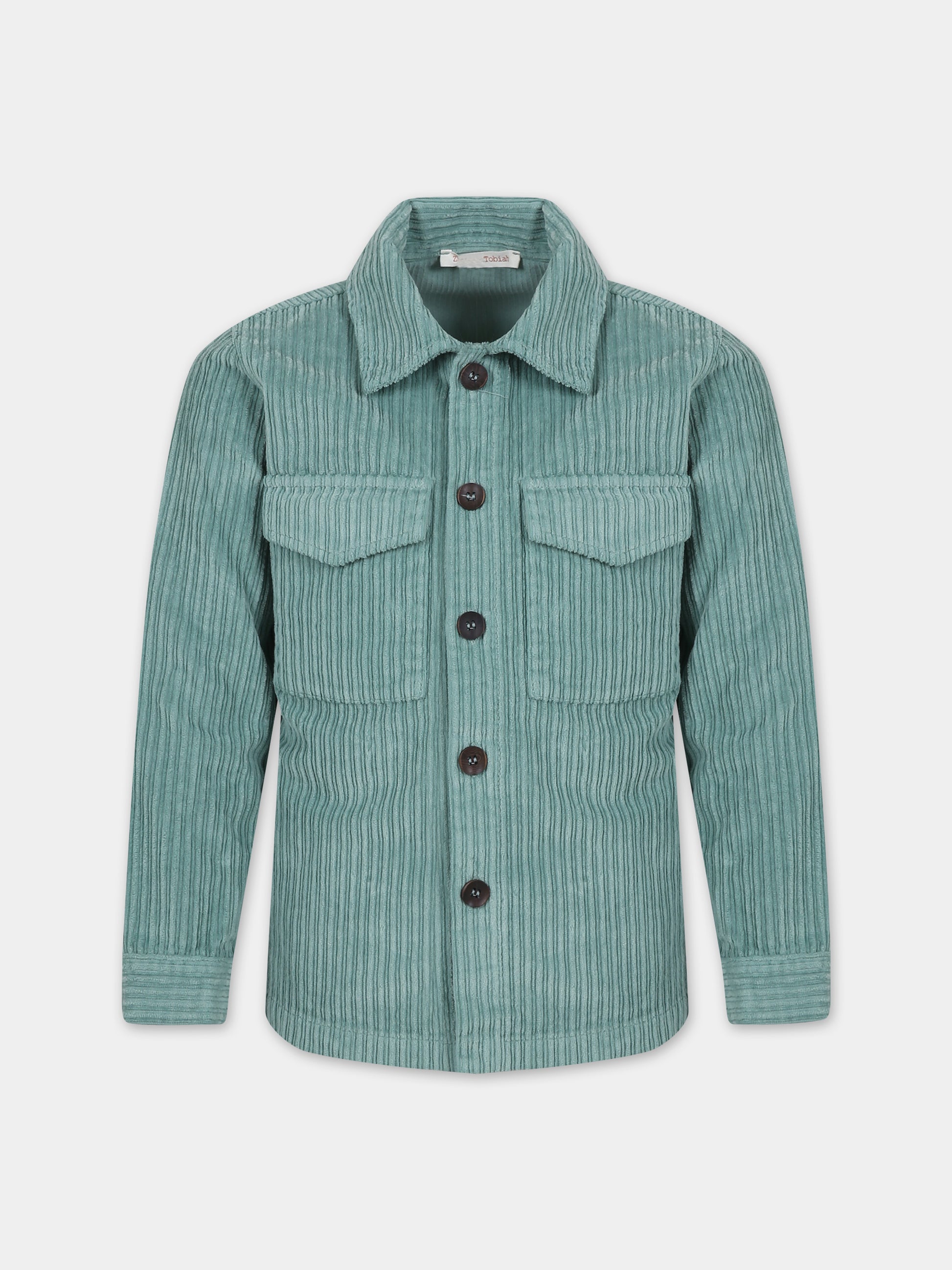 Colore: Celeste Descrizione: Camicia celeste in velluto a costine, maniche lunghe, con colletto a revers, chiusura frontale con bottoni, tasche con patta sul petto. Dettagli: 98% Cotone, 2% Elastan. Lavare a 40°C.