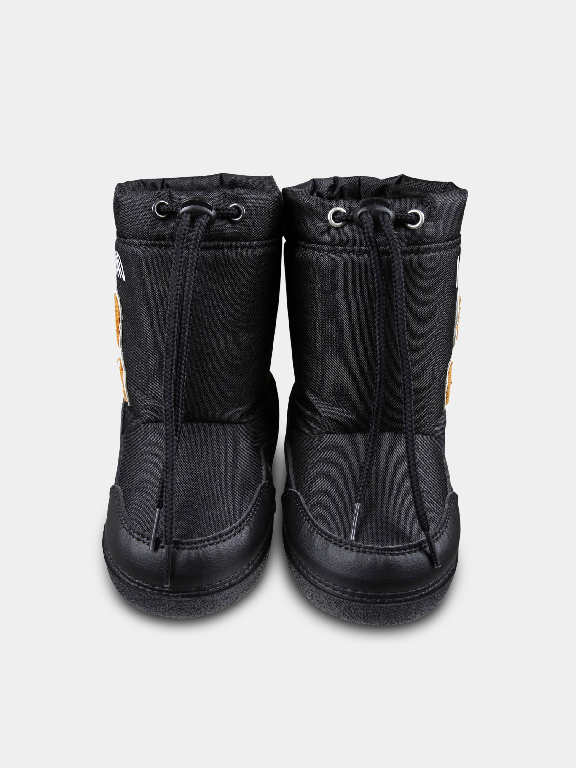 Colore: Nero Descrizione: Stivali da neve neri, con suola in gomma, interno in morbido shearling e coulisse regolabile sul davanti. Sono decorati con Teddy Bear in spugna e logo sui lati. Made in Italy Dettagli: 50% Tessile, 50% Sintetico.