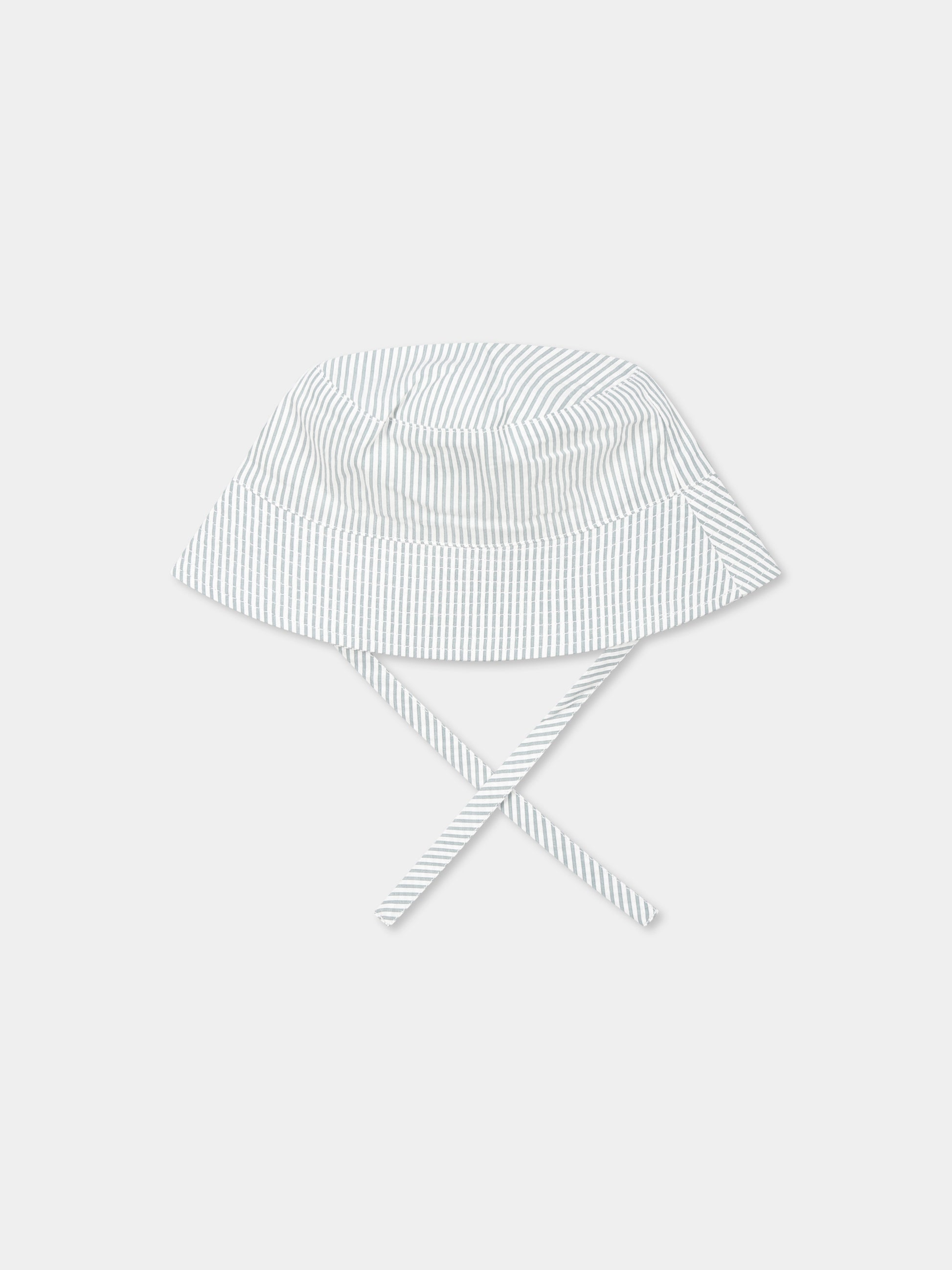 Colore: Grigio Descrizione: Cloche grigia a righe, realizzata in cotone organico, con laccetti; é decorata con patch logata sulla parte anteriore. Dettagli: 100% Cotone organico. Lavare a 30°C.